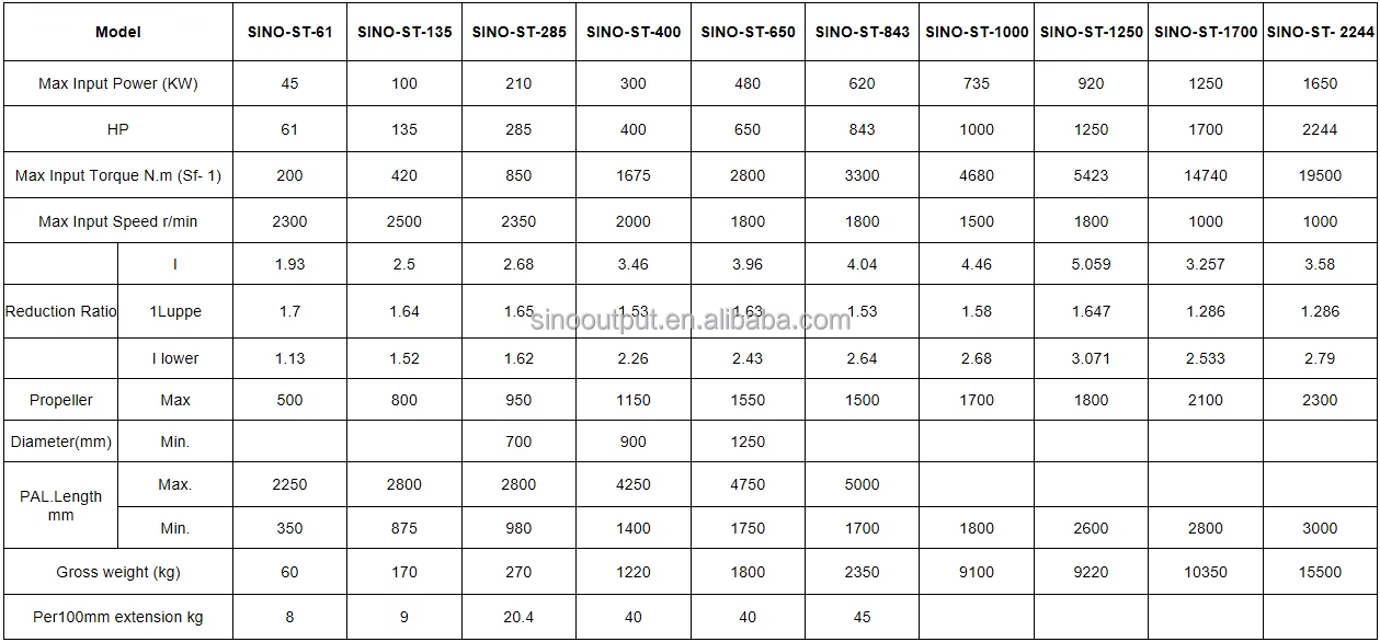 Above models normally name as the engine horsepower, it will not limited as above models... ST series could up to 3500hp. PAL: The length between to center line of the transmission flange and the center line of the propeller. Max input torque of rudder propeller decided capacity of its transmit power of prime mover the kind of rudder propeller operation, the type prime mover or the sort of vessel may influence the actual allowable input torque figure. It is recommended to consult with our technical staff before selecting the definite rudder propeller size.
